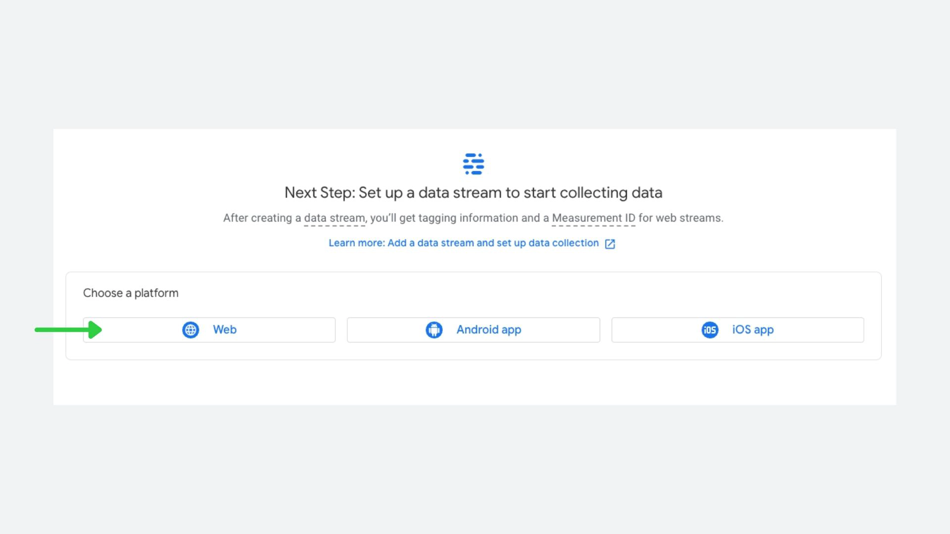 Next, add a data stream and choose Web.